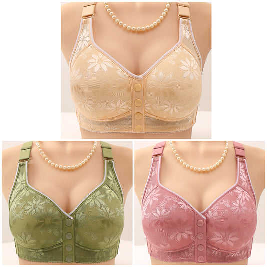 😍【Pakiranje od 3 dijelova】Ženski grudnjak bez žice s prednjim gumbima 【40-120 kg】❤️Udoban antibakterijski prirodni pamuk