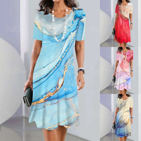 Nova ležerna haljina kratkih rukava s mramornim printom