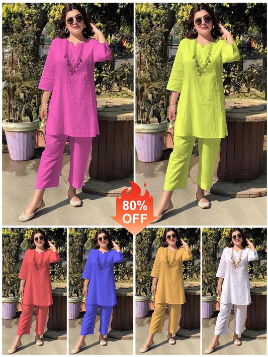 【40-100 kg】Novo ljetno modno jednobojno temperamentno dvodijelno odijelo s dugim rukavima u etničkom stilu 3628158