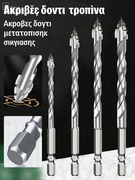 【6+8+10+12mm】Τρυπάνι εκκεντρικό με τετράπλευρη οδόντωση, κατάλληλο για ξηρή διάτρηση σε πλακάκια, σκυρόδεμα, μάρμαρο και γυαλί