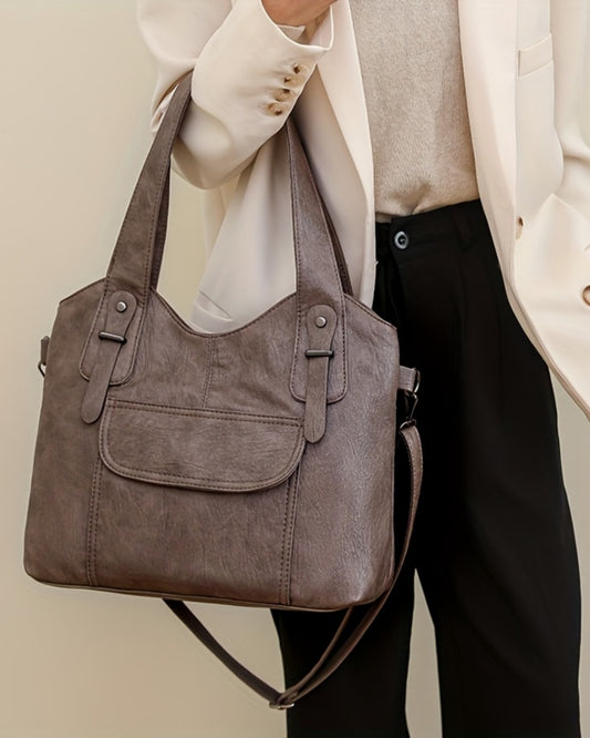 👜Νέα γυναικεία ρετρό τσάντα ώμου, μεγάλη χωρητικότητα με πολυεπίπεδη σχεδίαση, μοντέρνα και ευκολοσυνδύαστη