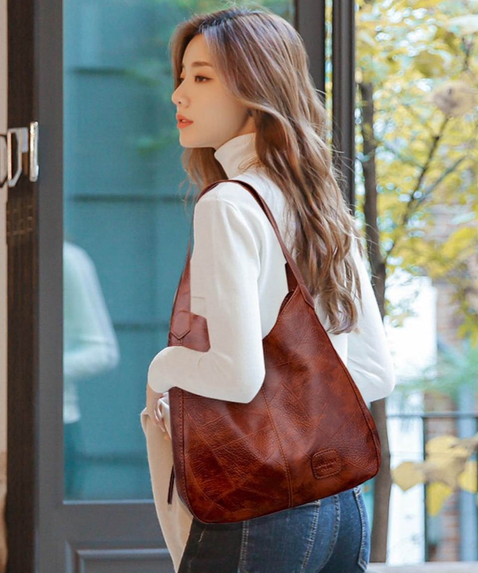 👜Νέα γυναικεία ρετρό τσάντα ώμου, μεγάλη χωρητικότητα με πολυεπίπεδη σχεδίαση, μοντέρνα και ευκολοσυνδύαστη