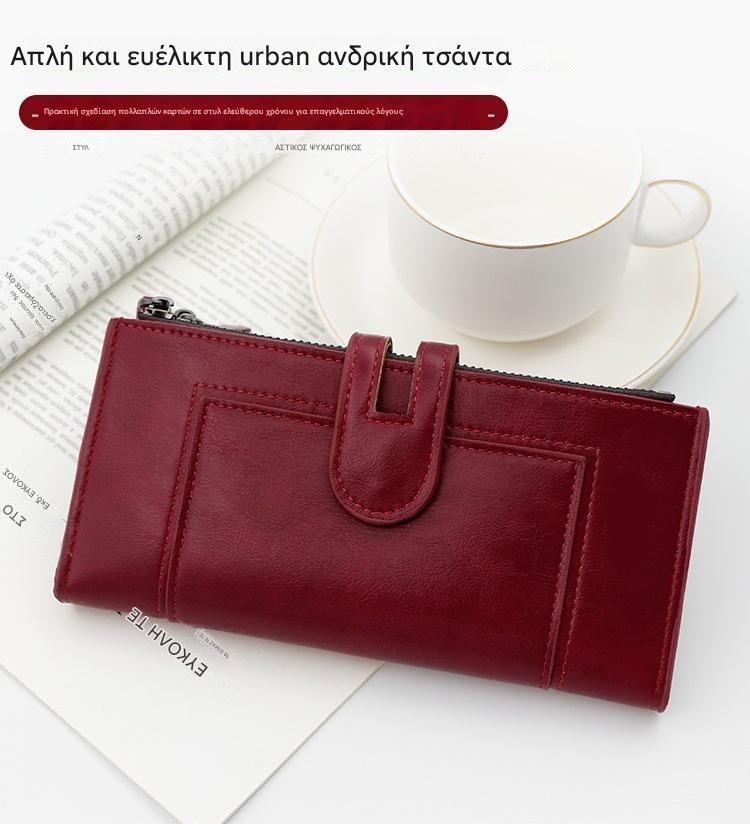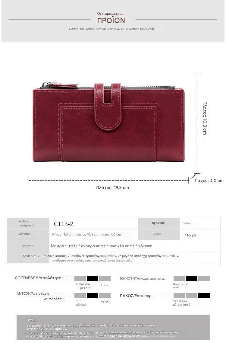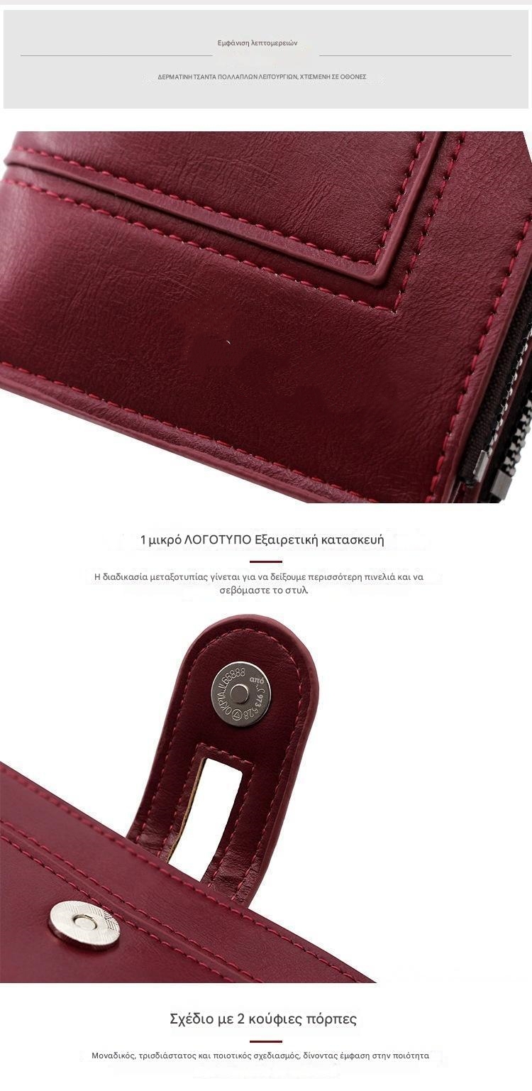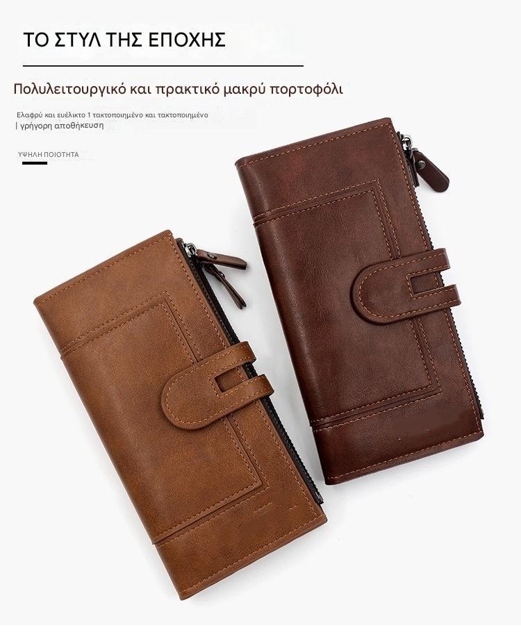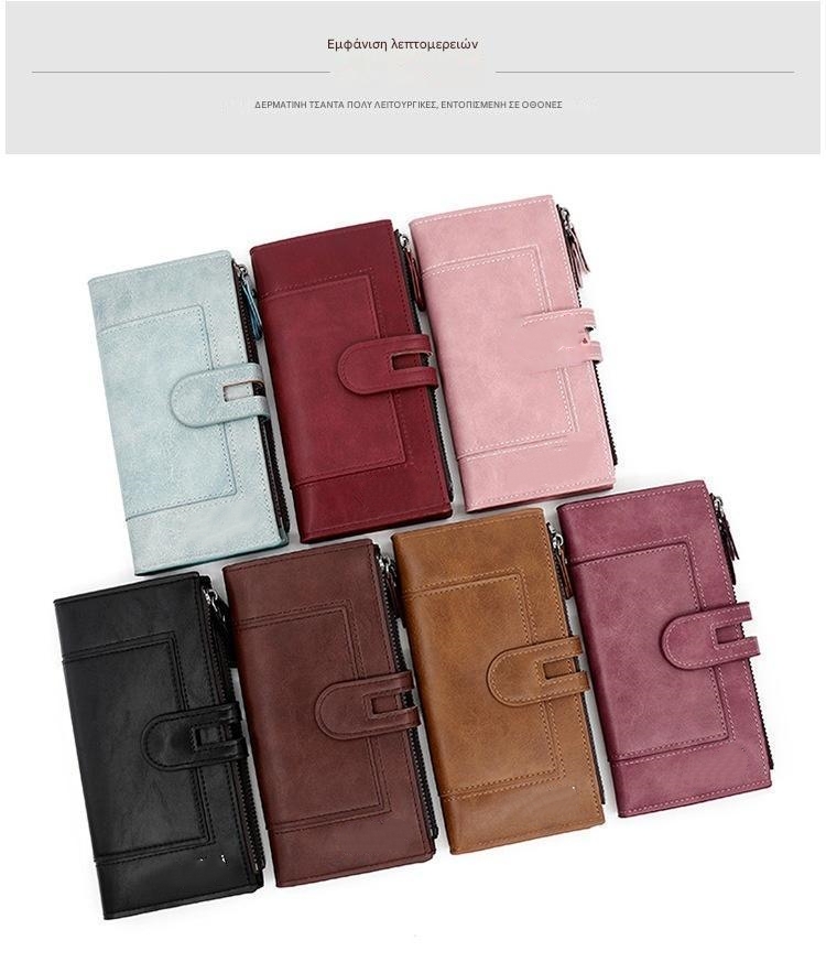 💕💰 Γυναικείο πορτοφόλι με διπλό φερμουάρ, σχεδιασμός με πολλές θήκες για κάρτες, ρετρό μαλακό δέρμα