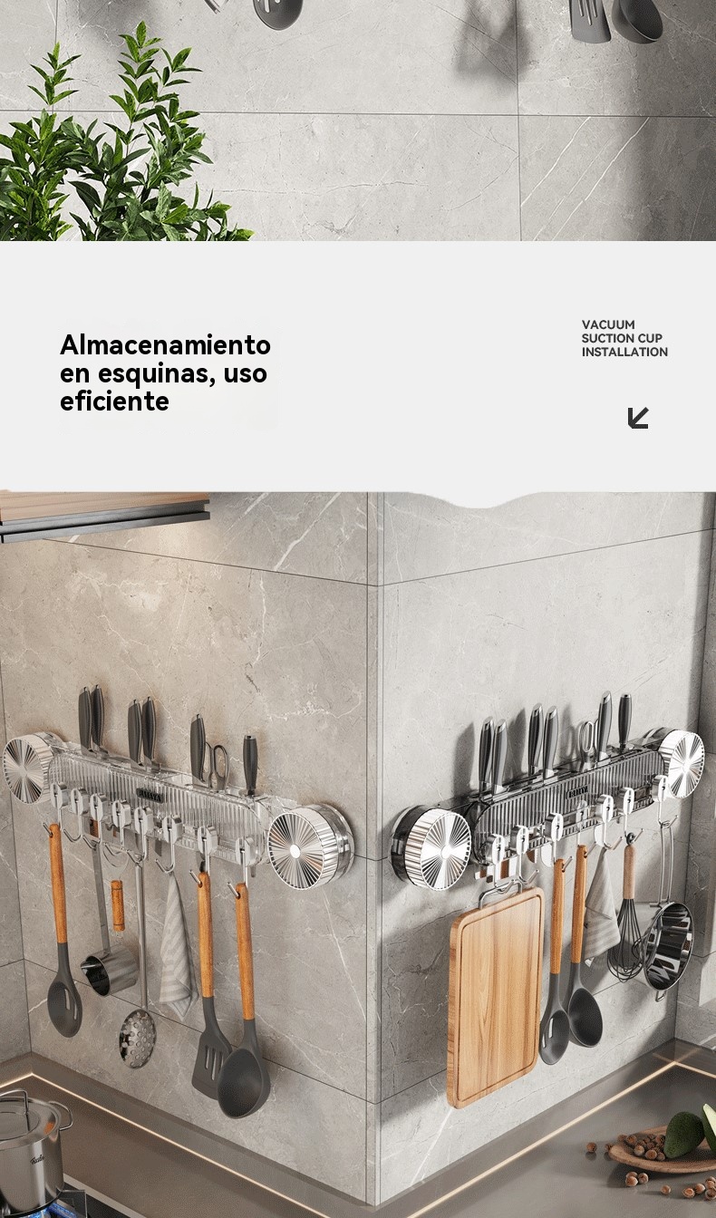 👍Super útil🏆 Soporte de pared multifuncional para cuchillos de cocina con ventosa - No requiere perforación