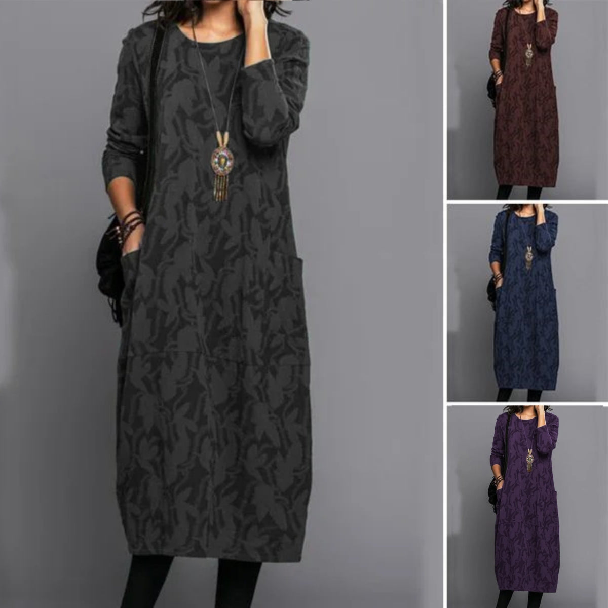 👗 Oferta especial de invierno 🔥【S-3XL】Nuevo vestido de alta calidad con diseño de bolsillos y cuello redondo, cómodo y a la moda.
