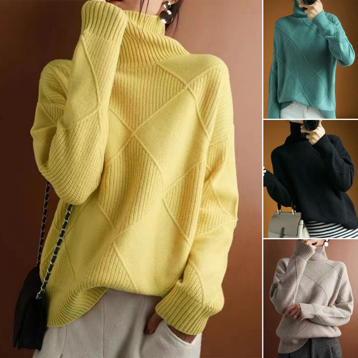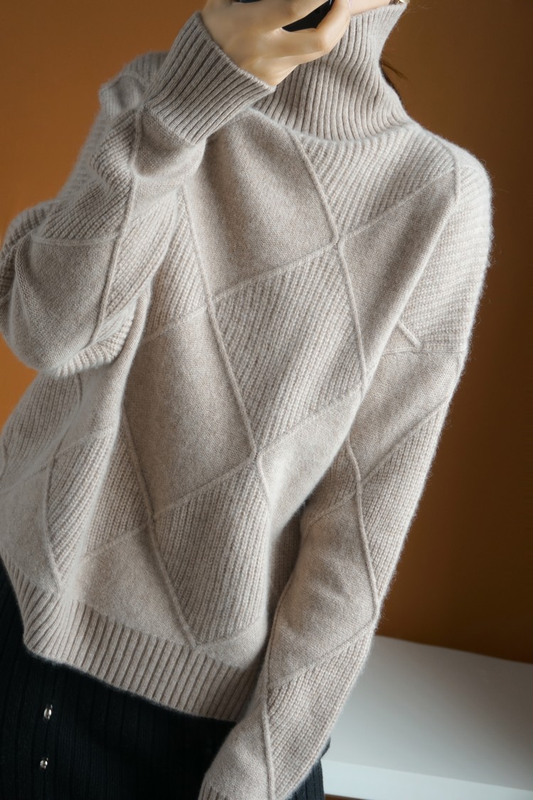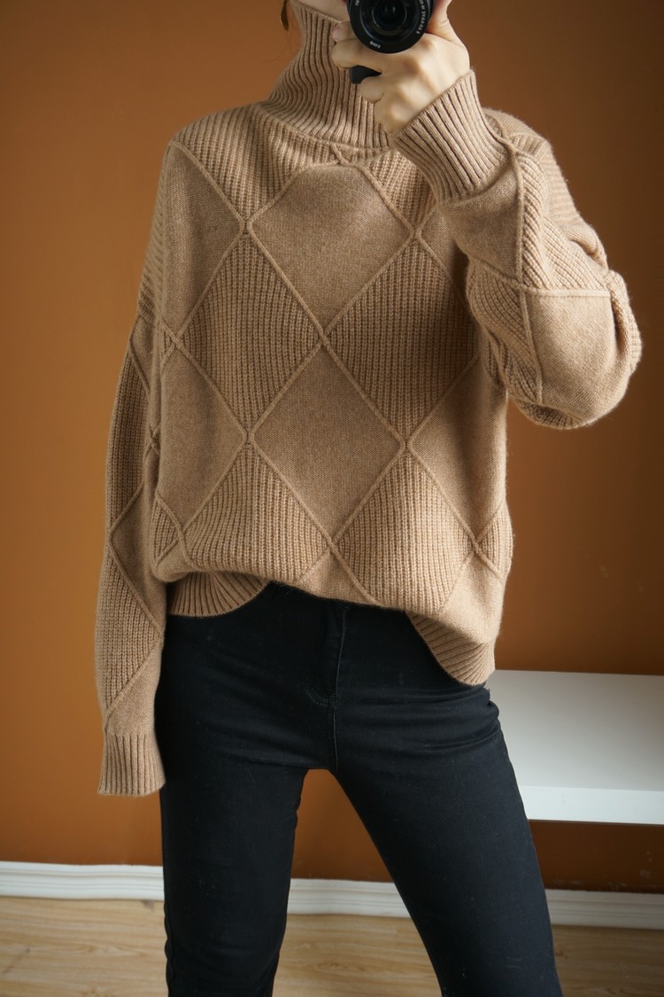 💟Jersey relajado de cachemir con cuello alto