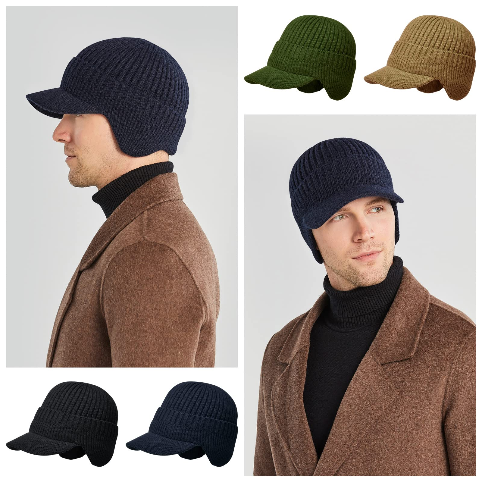 🔥 Gorro de punto cálido de invierno para hombre con orejeras,Versión normal / Versión con forro cálido