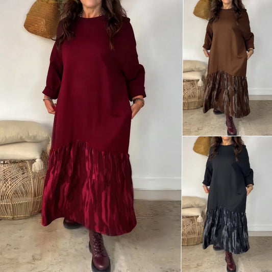 ✨【S-3XL】Damska luźna sukienka z okrągłym dekoltem, ozdobiona nieregularnym patchworkowym nadrukiem, uniwersalna i wygodna do noszenia