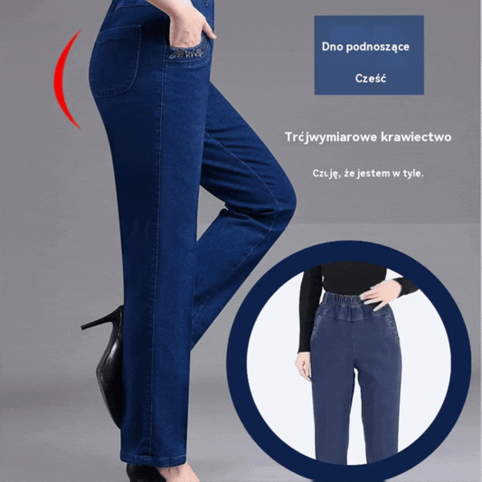2025 nowy model damskich dżinsów z wysokim stanem i elastycznym materiałem, zapewniających większy komfort.