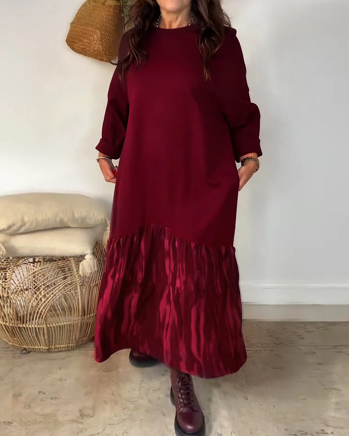 ✨【S-3XL】Damska luźna sukienka z okrągłym dekoltem, ozdobiona nieregularnym patchworkowym nadrukiem, uniwersalna i wygodna do noszenia