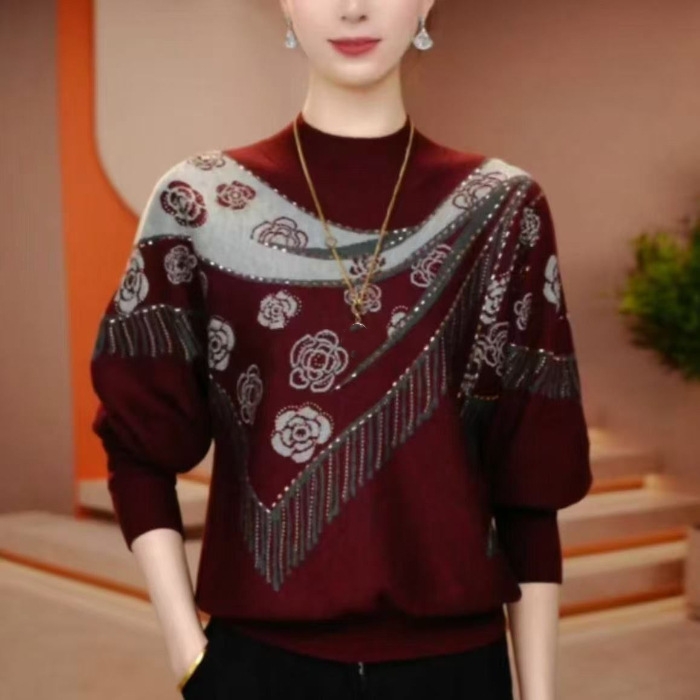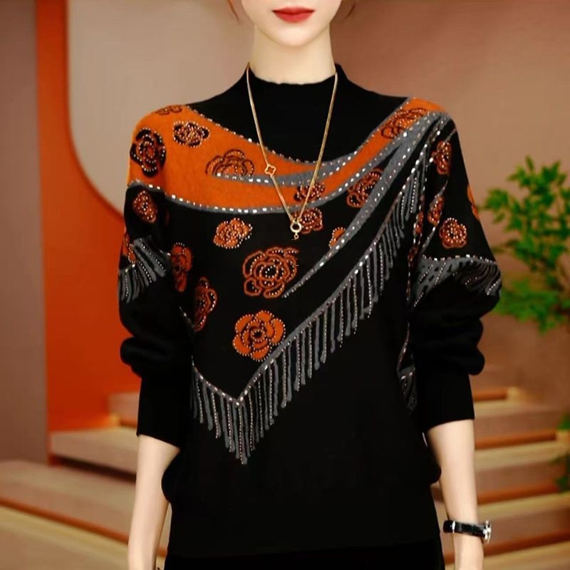 šćM-5XLćš„ Nowy jesienno-zimowy damski top dla kobiet w Årednim wieku, modny nadruk, wygodny w noszeniu