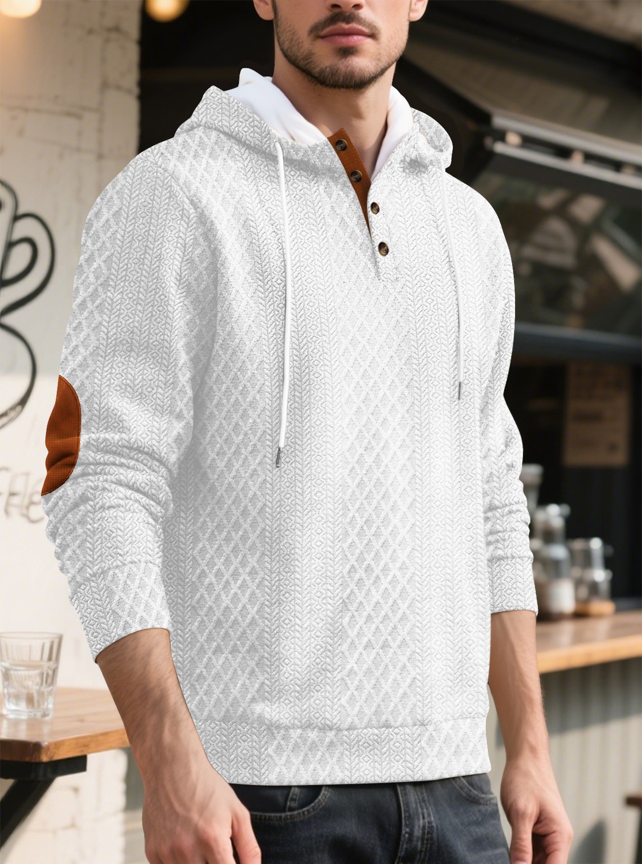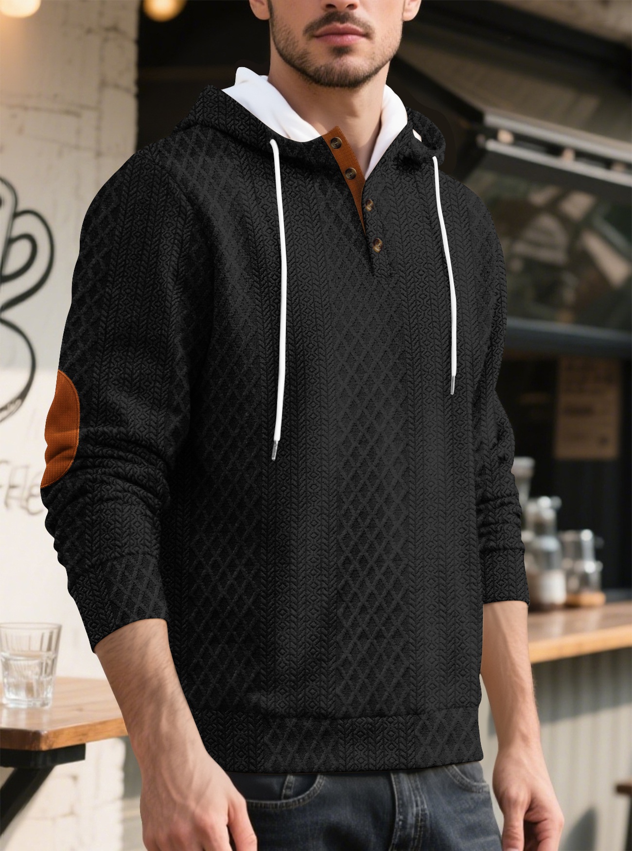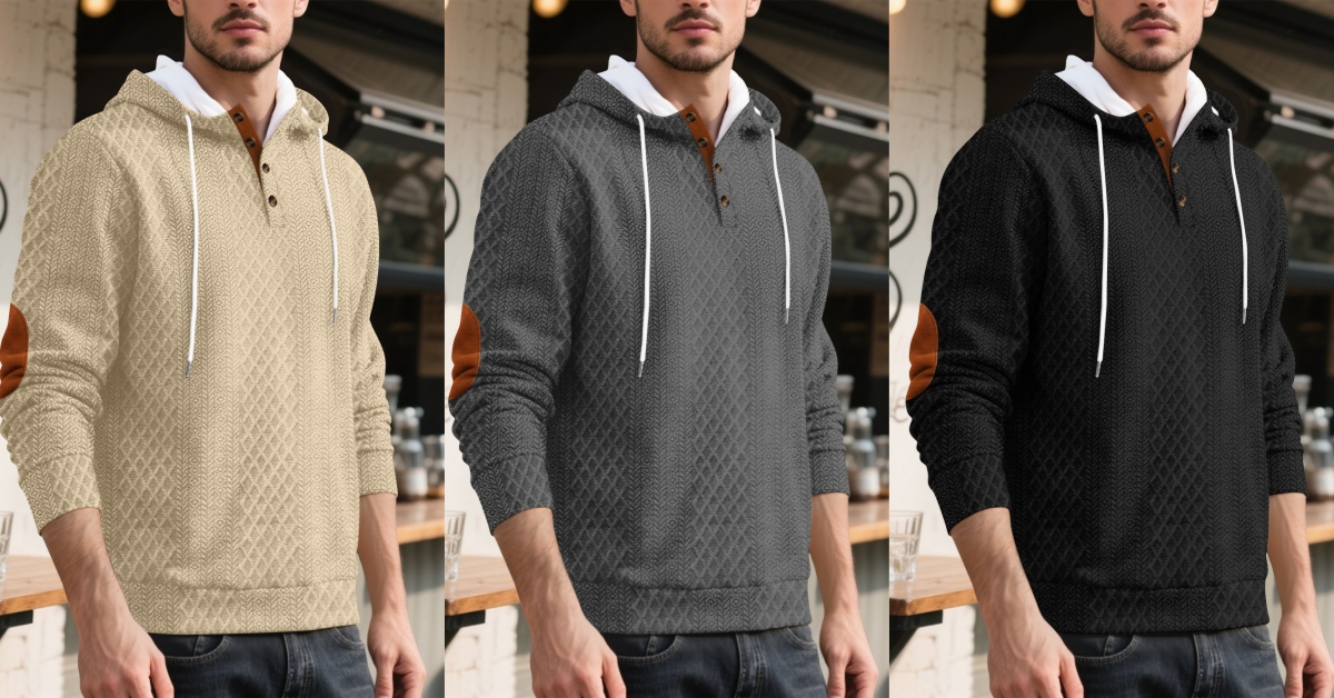 š„ćS-3XLćMÄska casualowa bluza z kapturem, żakardowa, jednokolorowa, 2025
