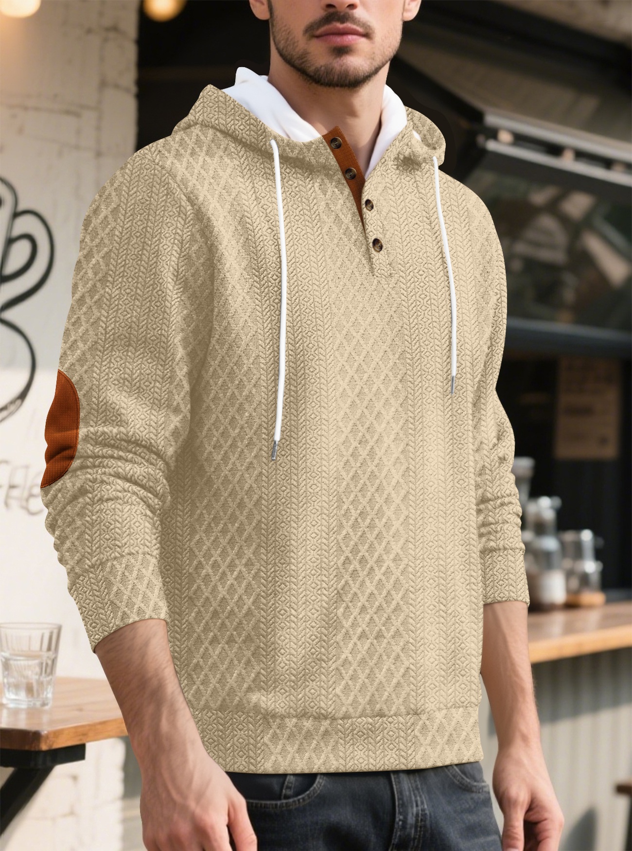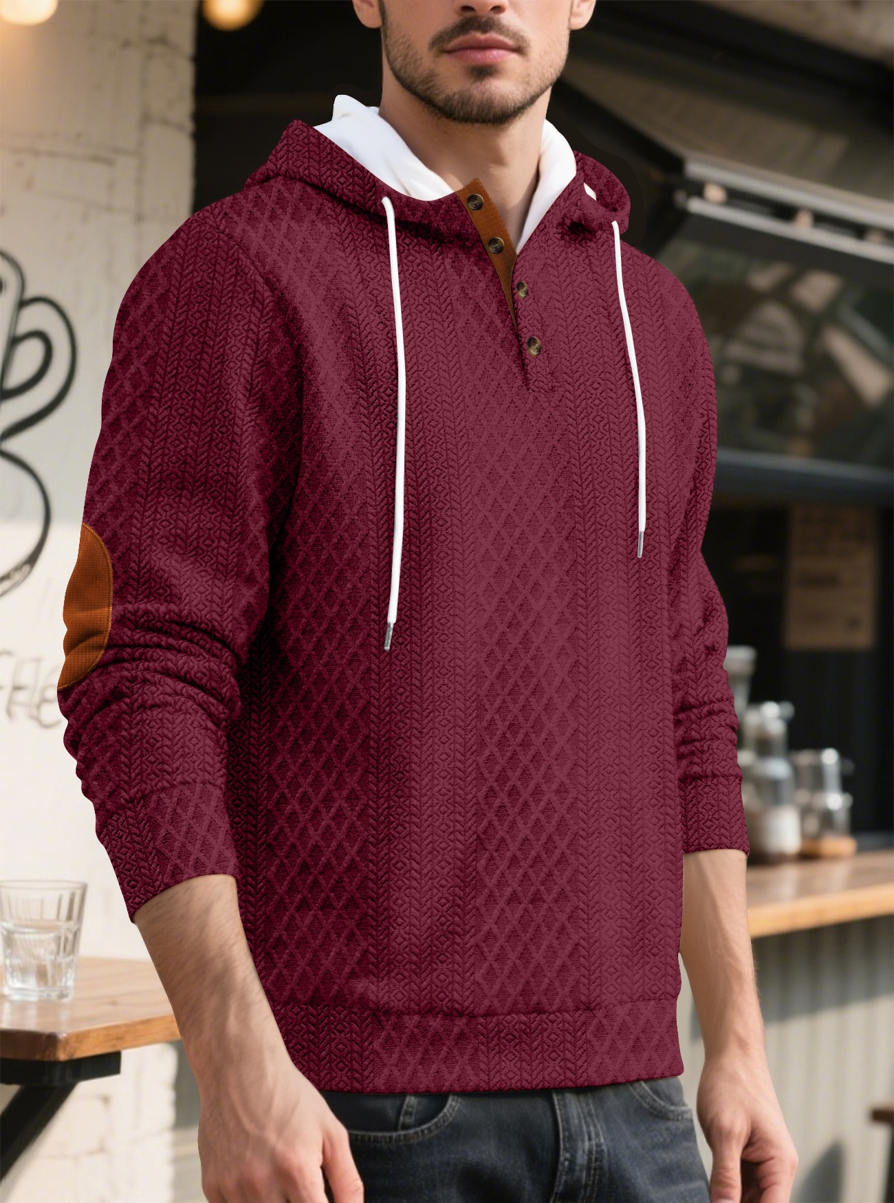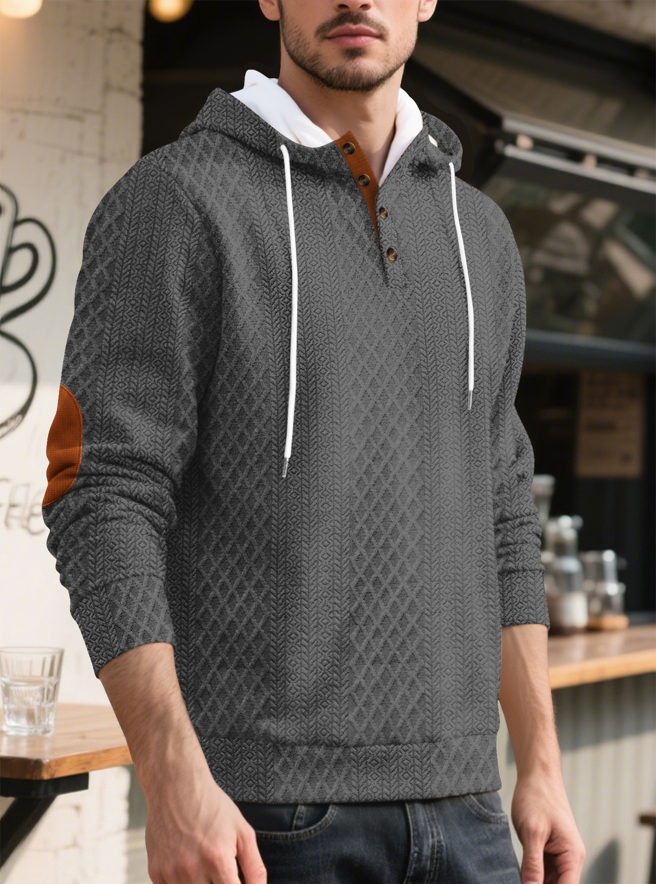 š„ćS-3XLćMÄska casualowa bluza z kapturem, żakardowa, jednokolorowa, 2025