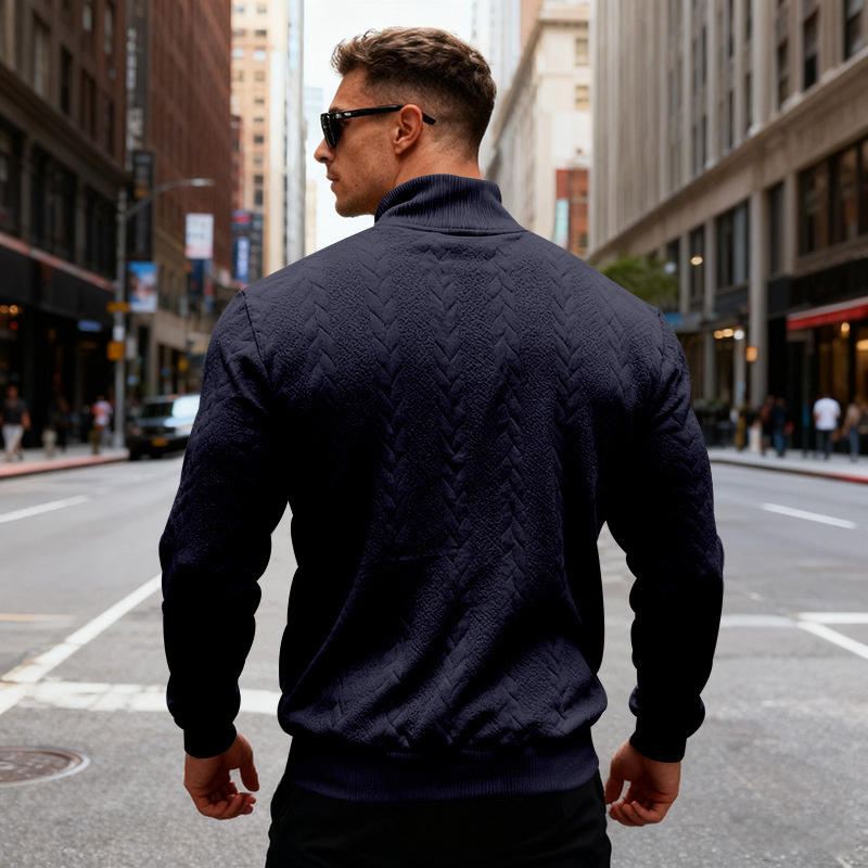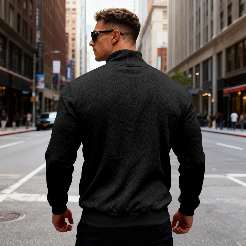 🧥【S-3XL】Męska żakardowa bluza z wysokim kołnierzem na jesień i zimę, luźna i casualowa bluza/kurtka z półzamkiem, w rozmiarówce europejskiej