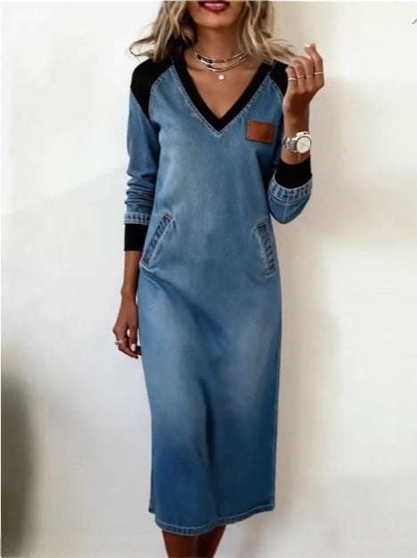 š¢ćS-3XLćNova moderna traper haljina s blokovima boja