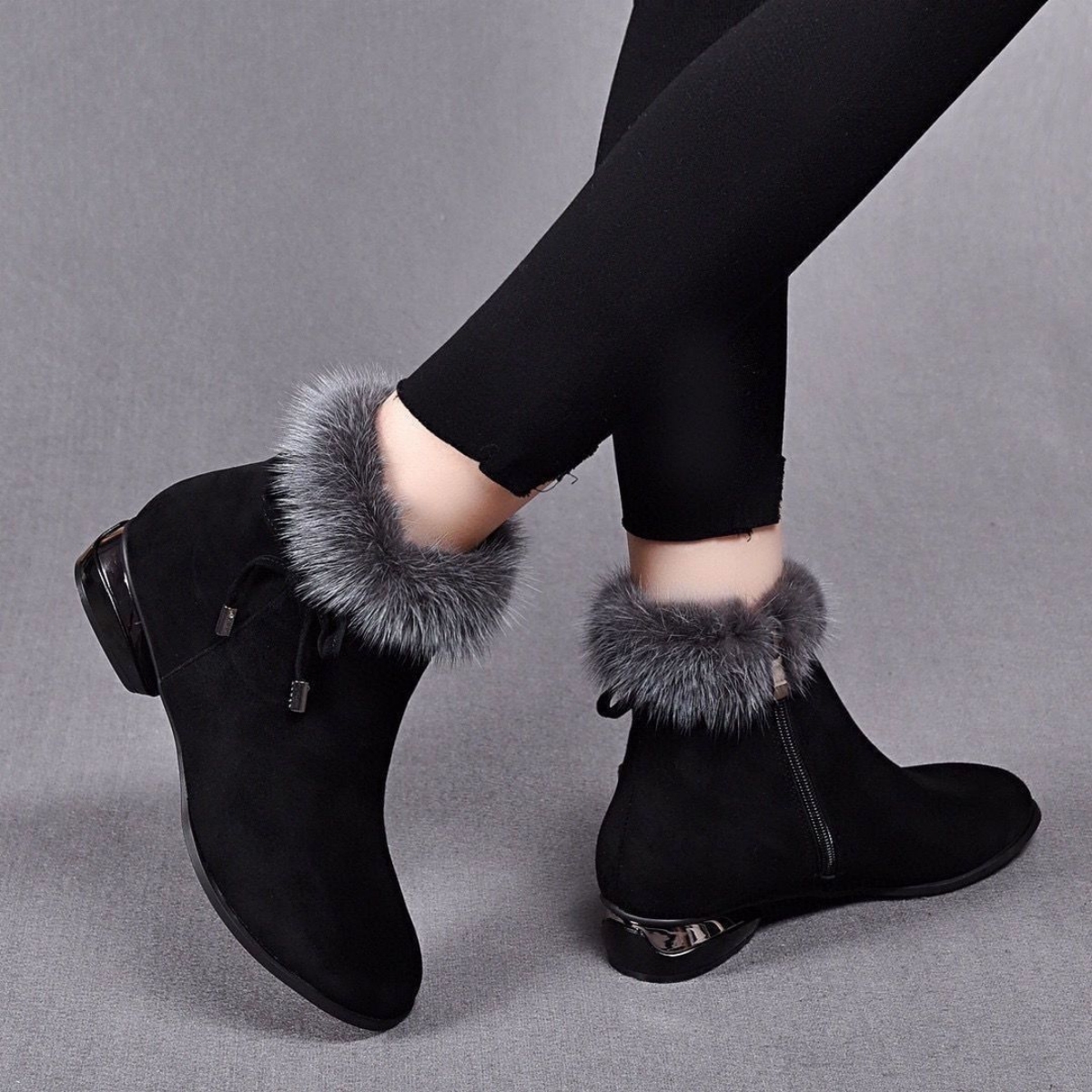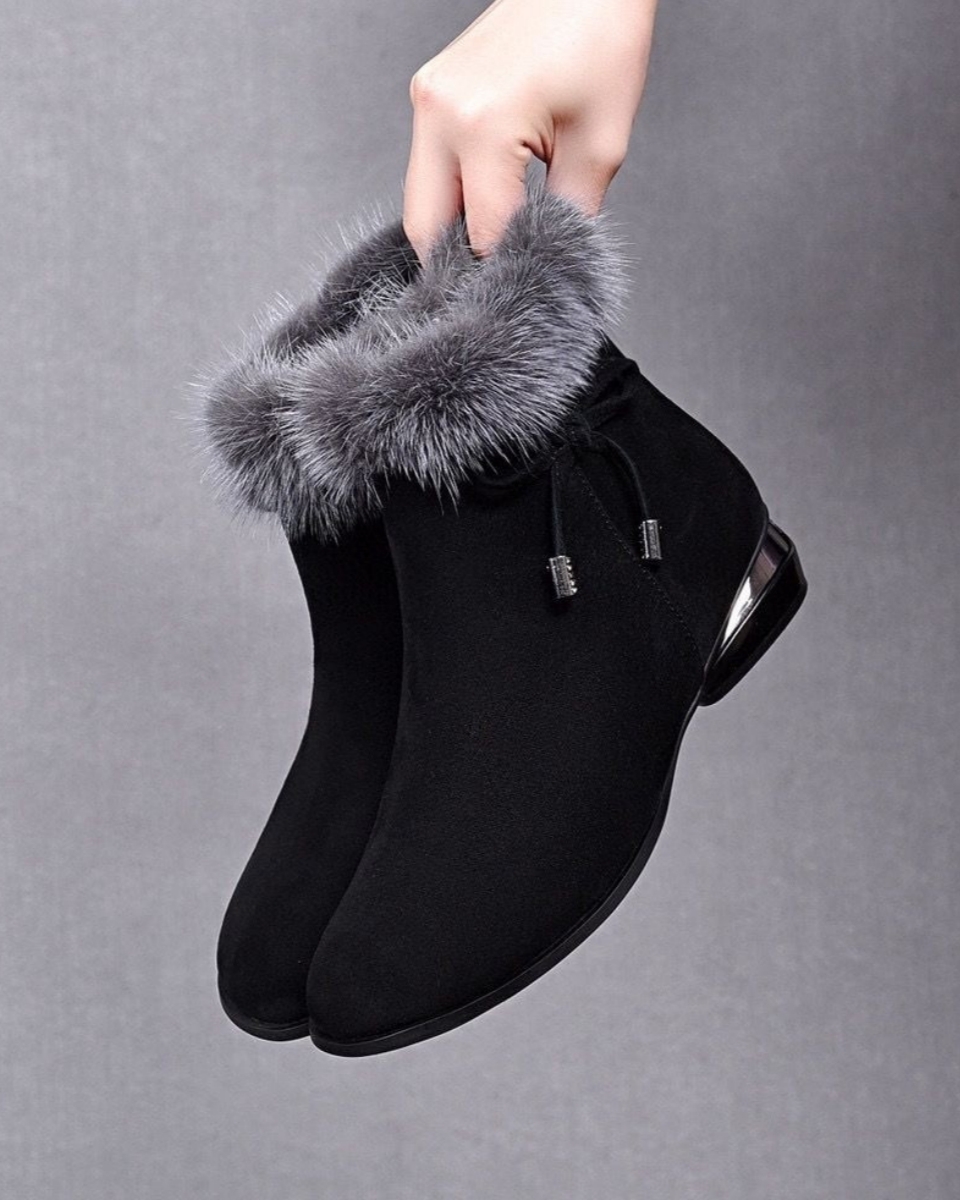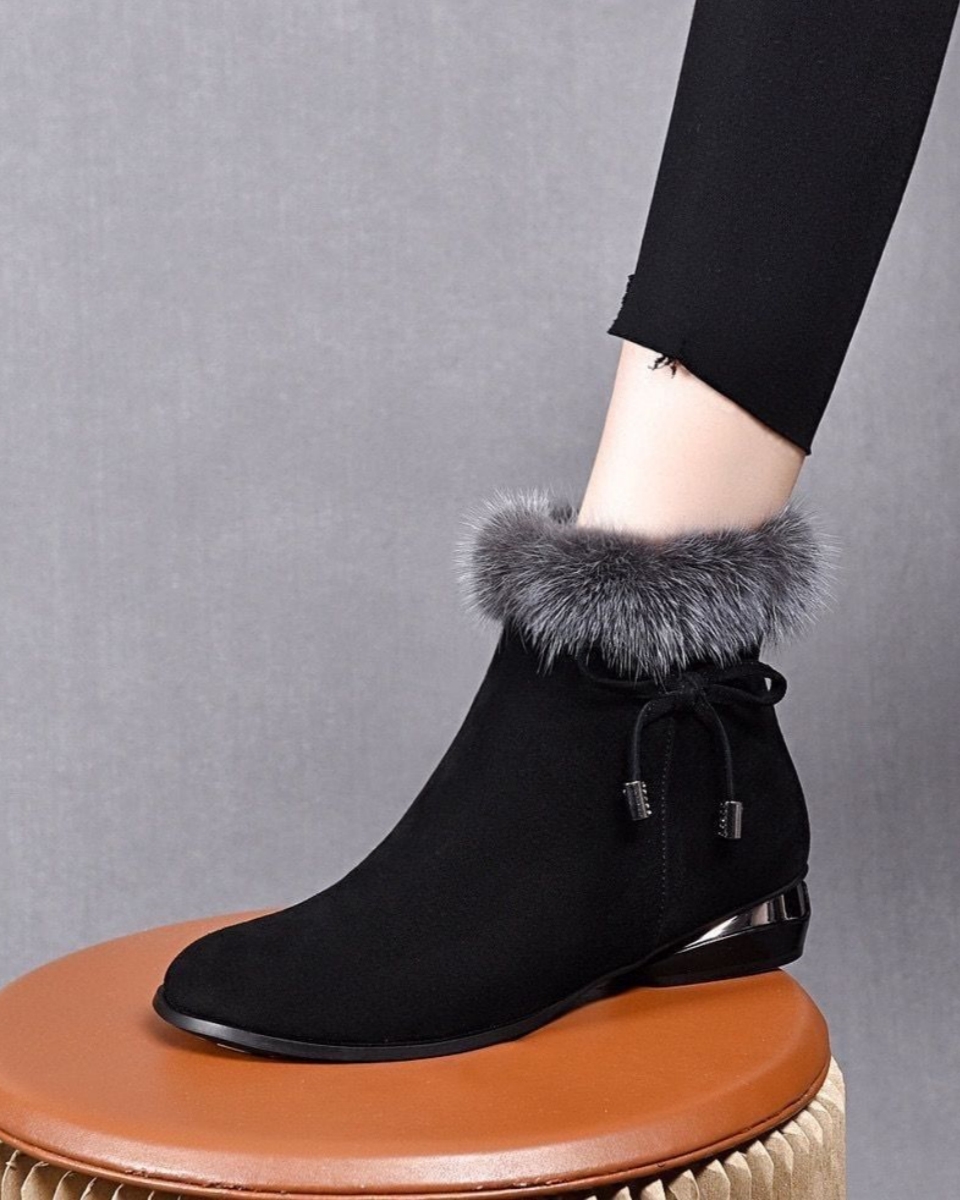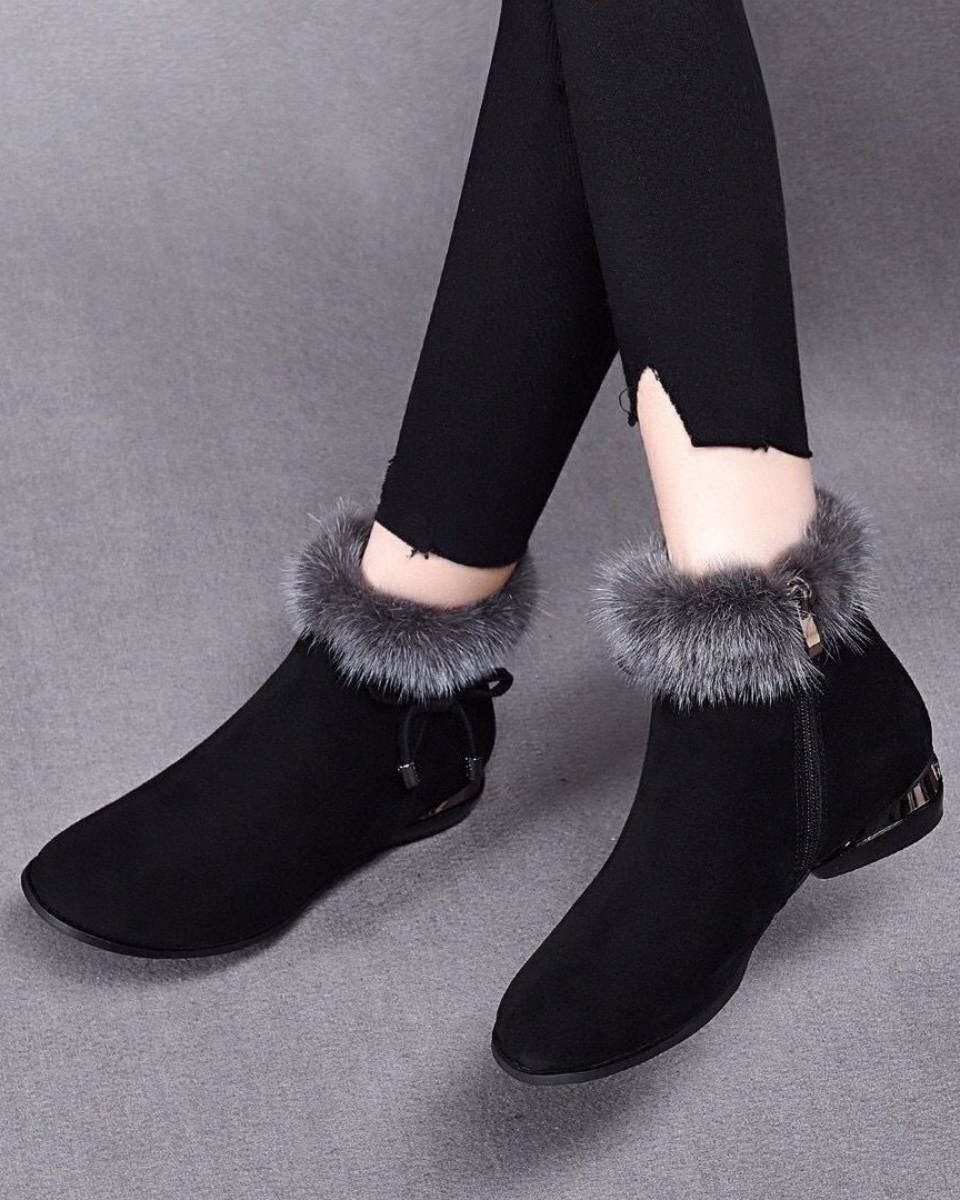 😍😍【35-41】Ženske gležnjače sa srednjom petom, okruglog vrha, od mekane crne kože.