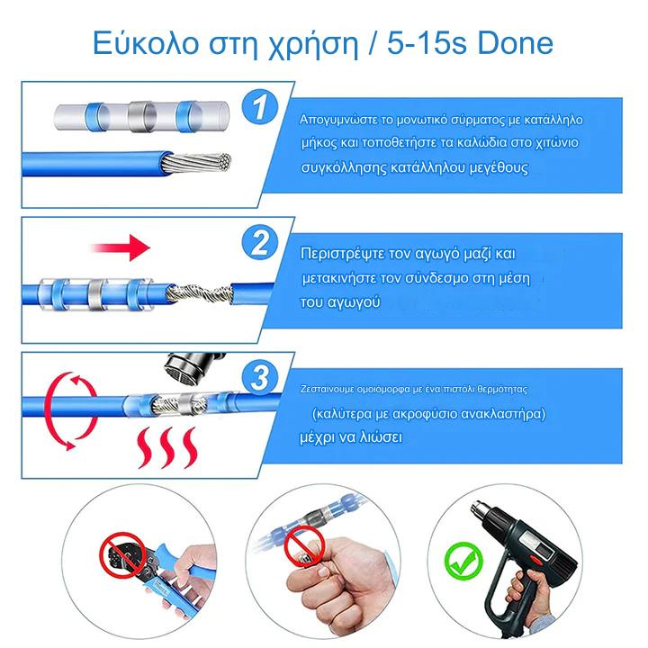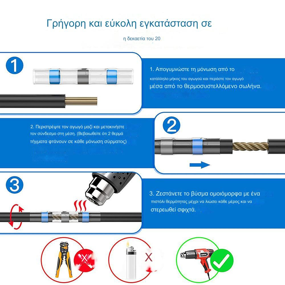 【100 komada】 popravak puknuća žice, komplet konektora termoskupljajuće žice
