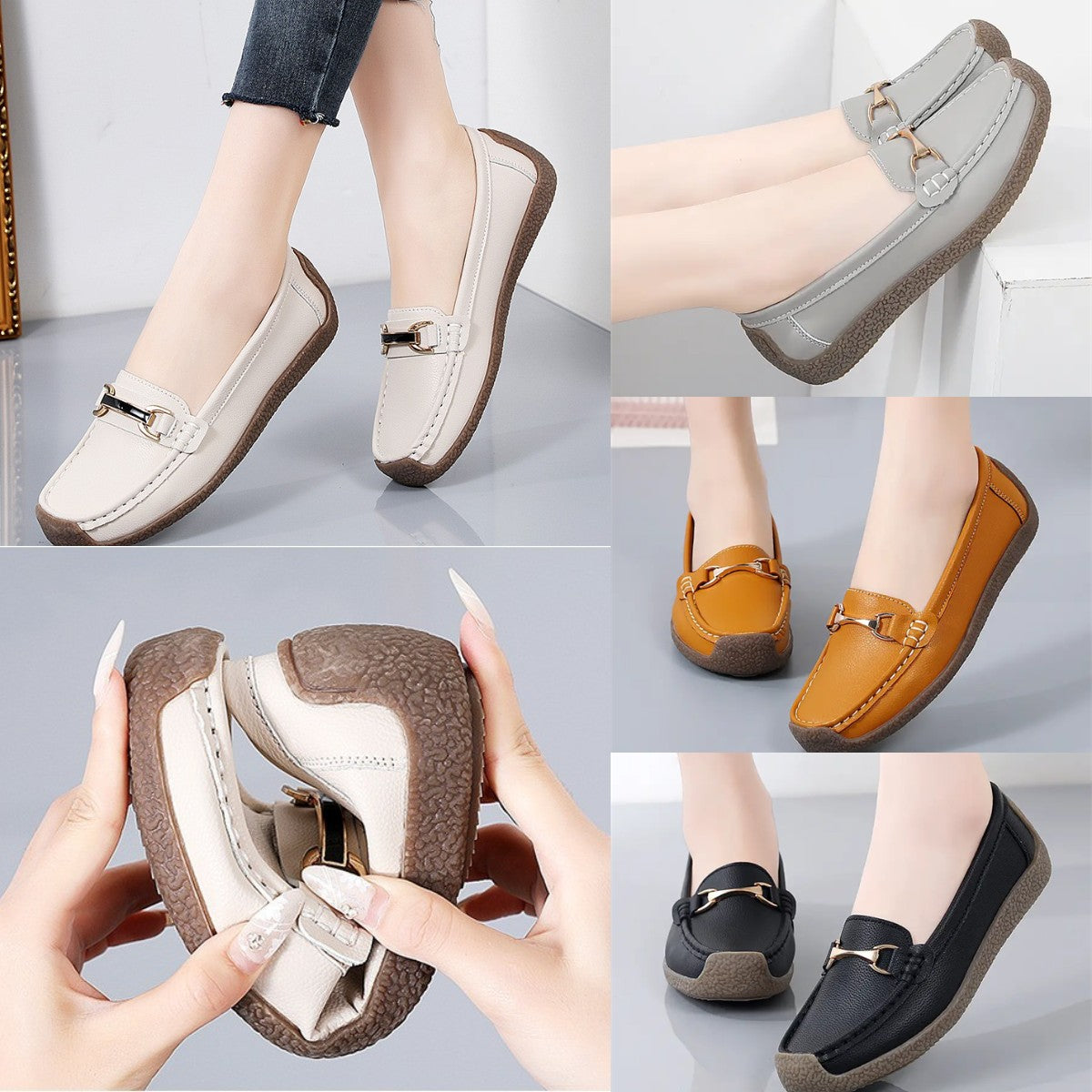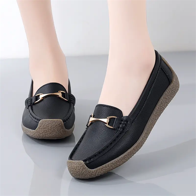【35-44】Jednobojne mekane kožne cipele za žene, ravne cipele s metalnim ukrasima 3708674