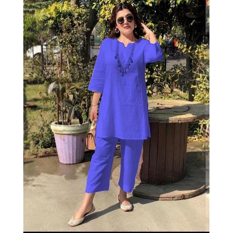 【40-100 kg】Novo ljetno modno jednobojno temperamentno dvodijelno odijelo s dugim rukavima u etničkom stilu