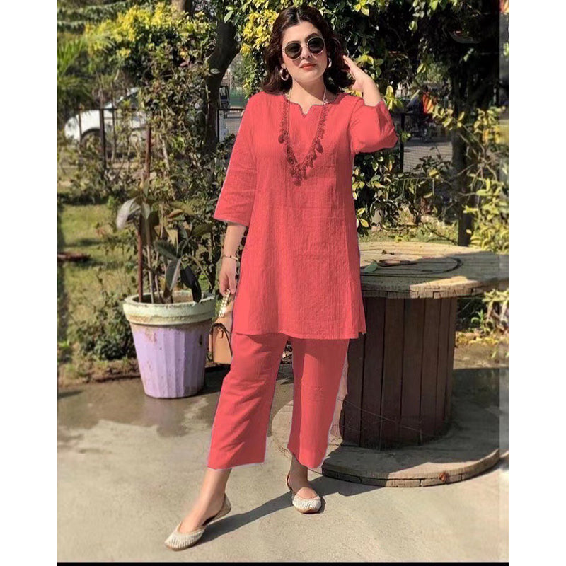 【40-100 kg】Novo ljetno modno jednobojno temperamentno dvodijelno odijelo s dugim rukavima u etničkom stilu 3628158